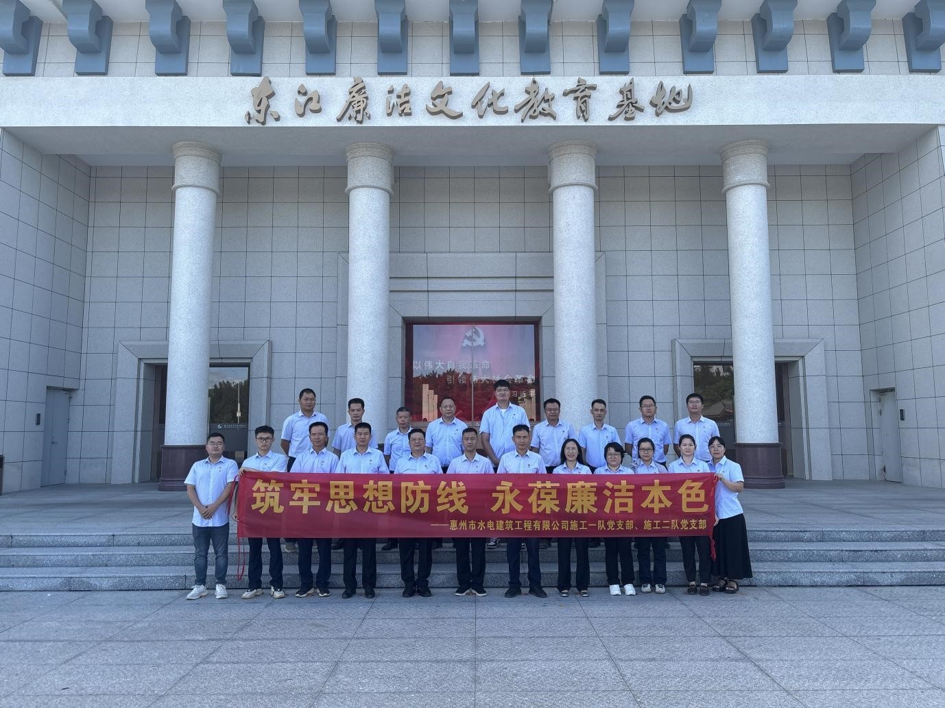 8月29日上午,惠州市水電建筑工程有限公司施工三隊黨支部組織全體黨員開展“回溯反法西斯烽火歲月,弘揚偉大抗戰精神”主題黨日活動,通過觀看紅色視頻、重溫入黨誓詞等環節,讓黨員在沉浸式學習中接受精神洗禮、汲取奮進力量?!?/p>